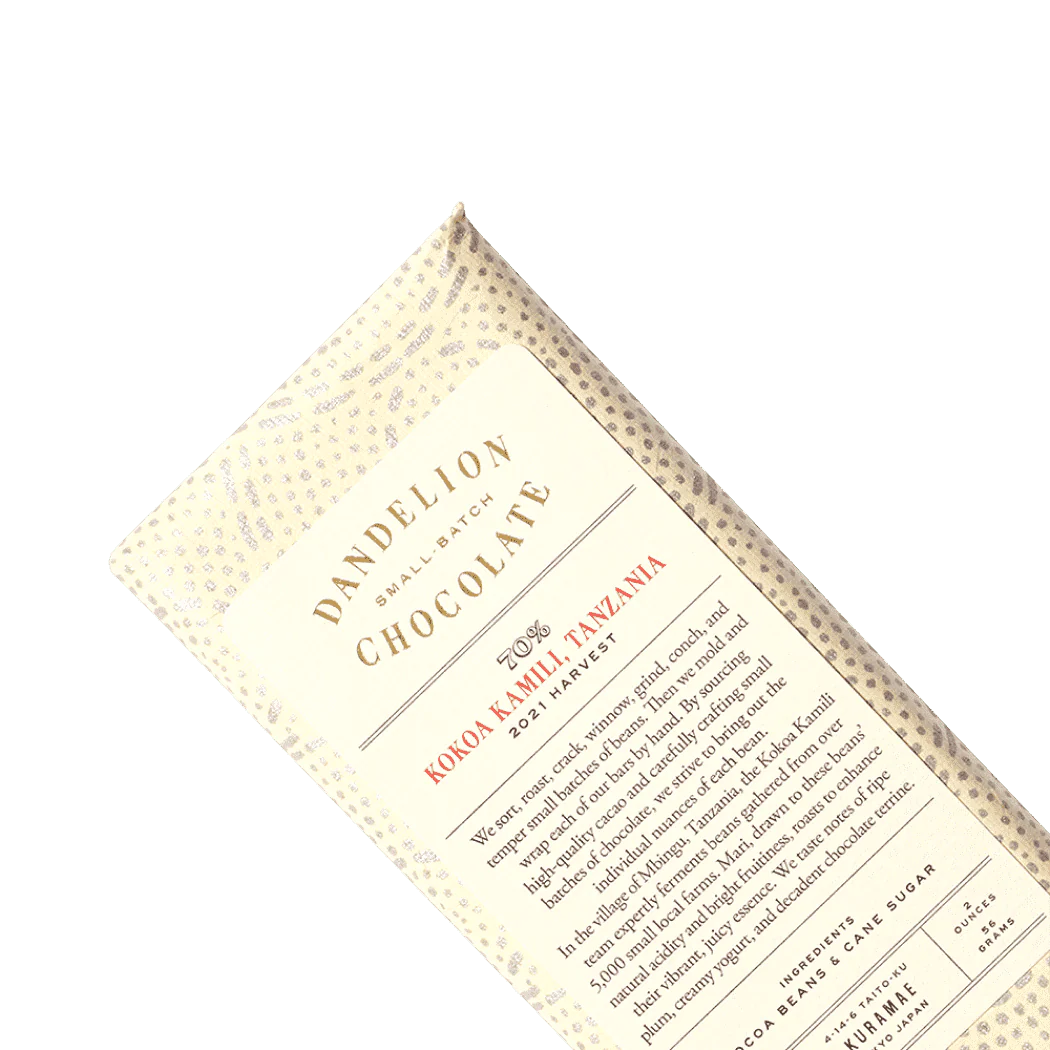 Dandelion Chocolate Japan - Kokoa Kamili, Tanzania 70% 2021 Harvest Single-Origin Chocolate Bar